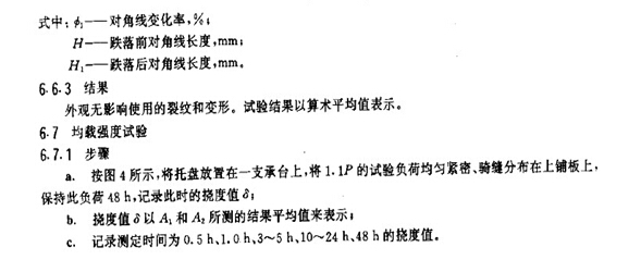 6.3.3 卸載后,外觀應無影響使用的裂紋和變形。試驗結果以算術平均值表示。